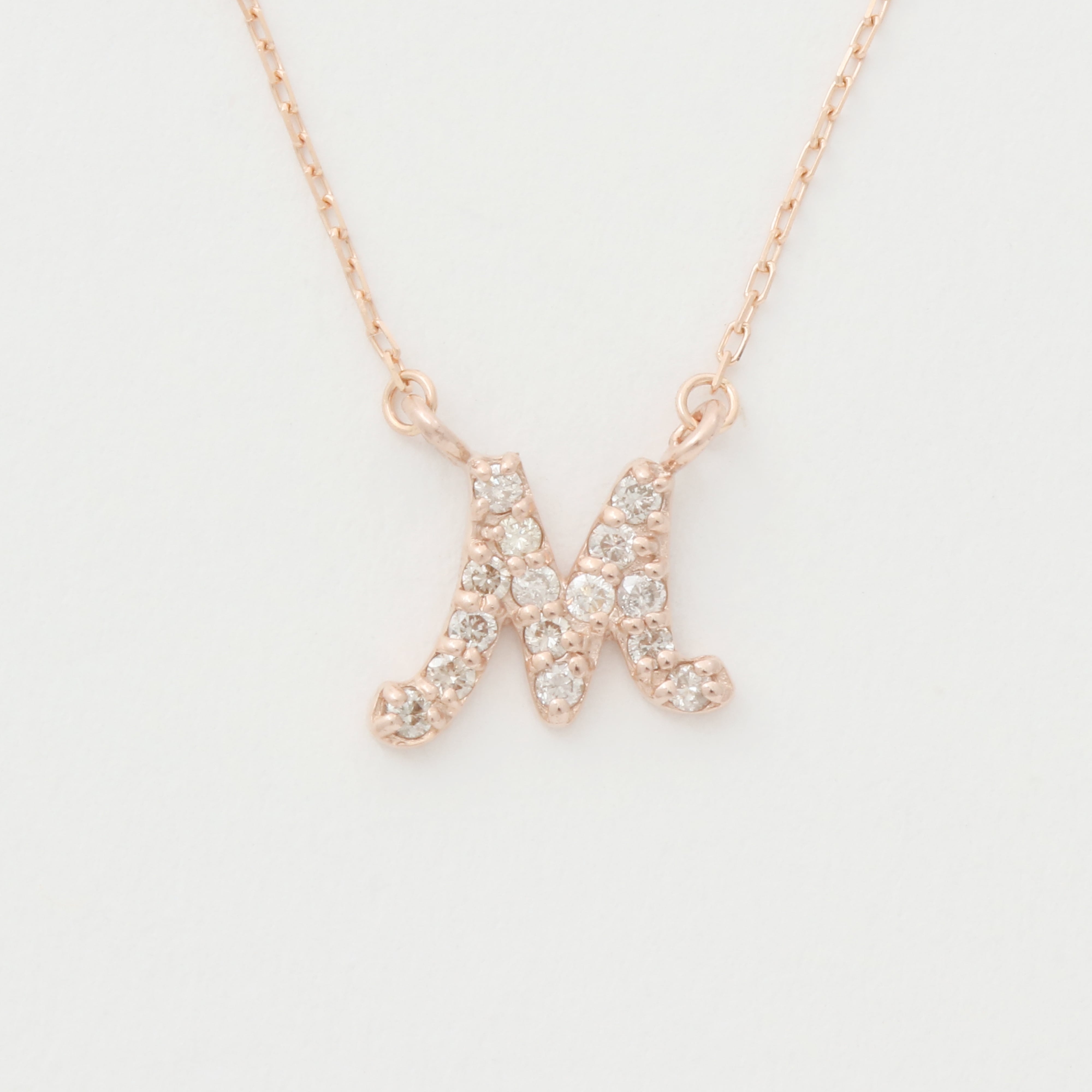 10金 ピンクゴールド ダイヤモンド イニシャルM ネックレス 0.1ct D10K-PG-M